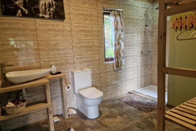 Санузел: ванная комната с тропическим душем и натуральной косметикой