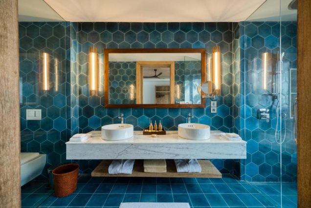 Санузел: ванна на открытом воздухе, душ «тропический дождь», двойная раковина
