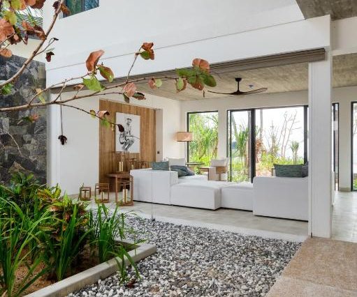 Панорамы: океан, скалы, пальмы, минималистичная архитектура