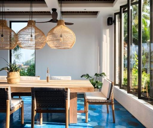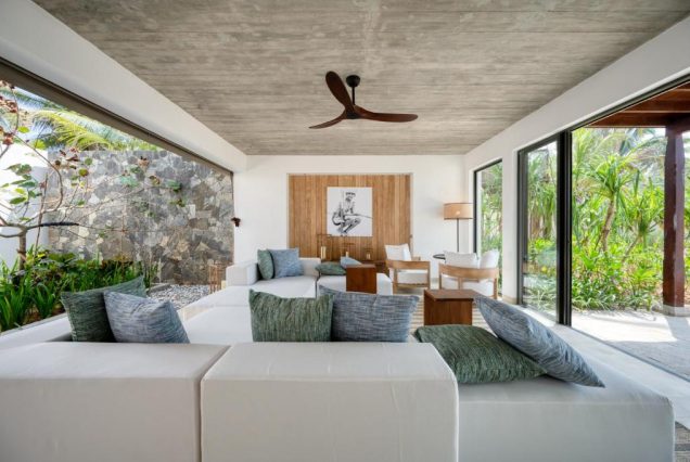 Интерьер: натуральное дерево, сланец, льняные ткани, шри-ланкийский стиль
