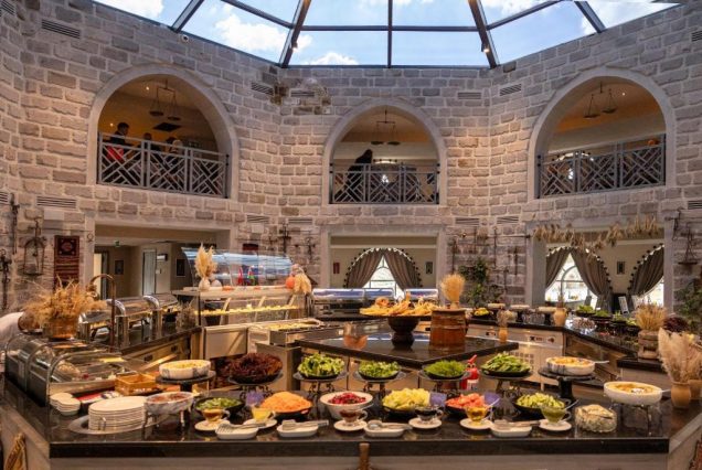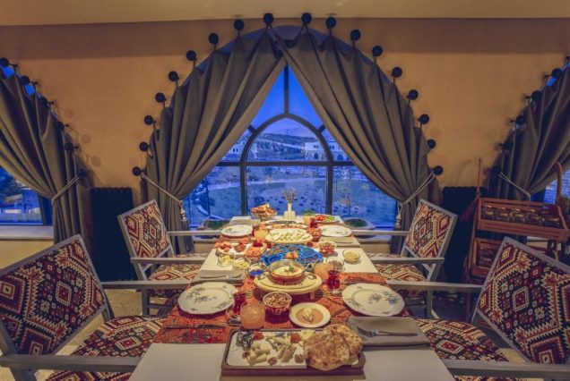 Завтраки: сервируются в формате буфета с традиционными каппадокийскими блюдами: оливки, сыр, домашние джемы, свежая выпечка, йогурт, варенья, чай, турецкий кофе