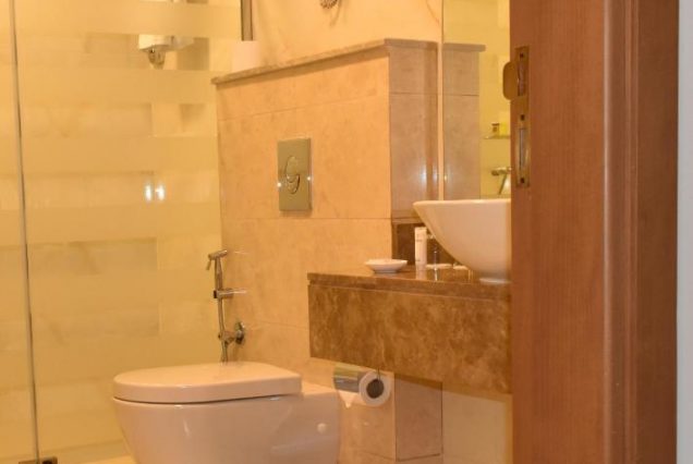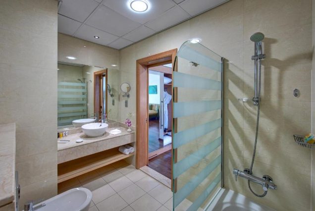 Санузел: душевая с тропическим душем, двойная раковина, премиум-косметика