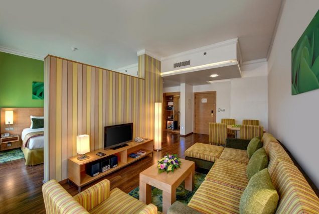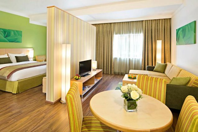 Расположение отеля очень удобное, рядом автобусная остановка, от которой до Дубай Молла за 15 мин ходит автобус. Был большой чистый номер, окна выходили на тихую улочку. Также в номере есть рабочий холодильник, в который очень удобно убирать воду. В номере была большая кровать и шторы блэкаут.