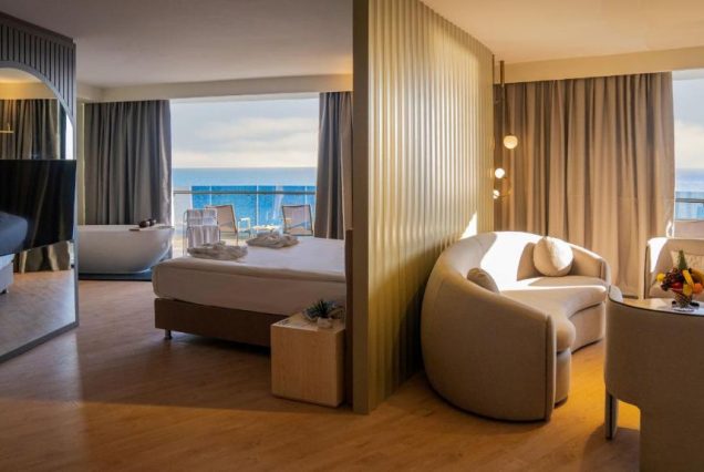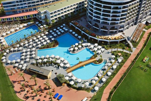 Alarcha Hotels & Resort 5★ — современный курорт на побережье Средиземного моря в районе Окурджалар, окружённый садами, тишиной и солнцем. Он сочетает в себе простор, комфорт и лёгкий восточный колорит. Номера светлые, со свежим интерьером, а из окон открываются виды на зелень, бассейны или море. Главный акцент здесь — на отдых без забот: всё включено, ухоженный пляж с пирсом, большой аквапарк, дневные и вечерние развлечения для детей и взрослых. Территория курорта — уютная, компактная, но насыщенная: с кафе, барами, ресторанами, открытым кинотеатром и СПА. Это место для тех, кто хочет настоящих каникул — с ленивыми днями у бассейна, яркими шоу по вечерам и вкусной едой на завтрак, обед и ужин.