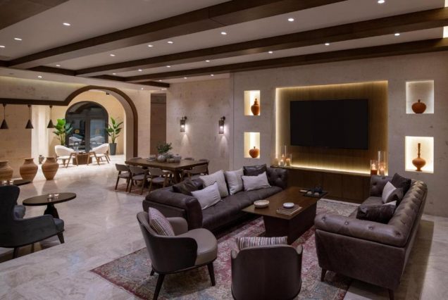 Интерьер: традиционный стиль Каппадокии + минимализм, ручная резьба, камень, дерево, ковры ручной работы