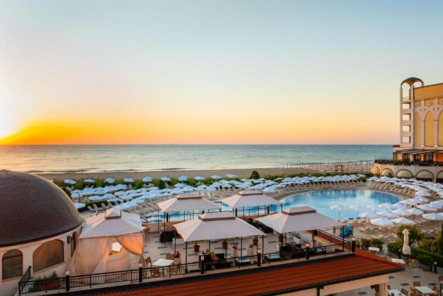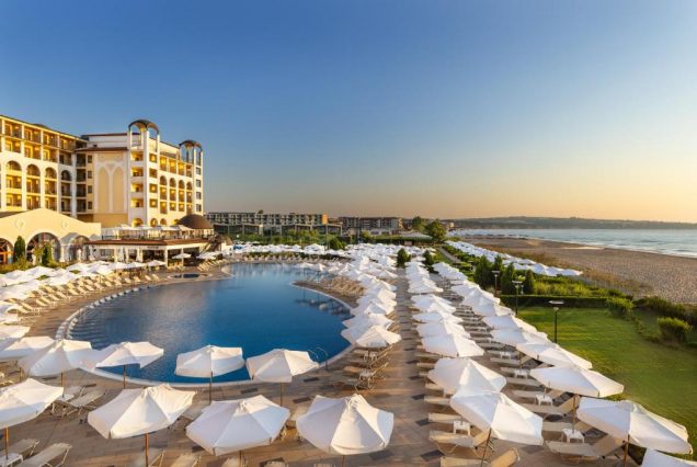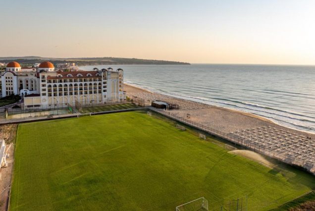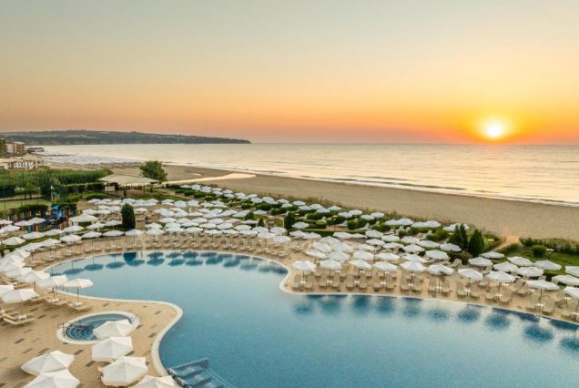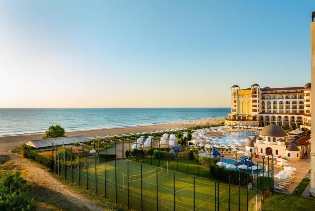 Локация: Болгария, Солнечный берег, на первой линии, окружён зеленью и пляжами