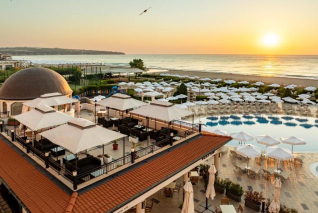 Alua Helios Bay — это курорт, где каждый момент наполнен солнцем, морским бризом и атмосферой беззаботного отдыха. Утро начинается с мягкого света, проникающего через окна вашего номера с видом на золотые пляжи и лазурное Черное море. Вас ждёт комфорт и уют, а каждый день — с чашкой свежесваренного кофе на балконе, в окружении зелени и свежего морского воздуха. Этот отель создан для тех, кто хочет сочетать активный отдых с расслаблением. Просторные номера с современным интерьером, натуральные материалы и светлые тона создают атмосферу гармонии. Здесь можно загорать у бассейна, пройтись по набережной или окунуться в культуру Болгарии через экскурсии по ближайшим городам. Вечер — это время ужина с видом на закат, когда каждый момент наполняется атмосферой летнего отдыха. СПА-процедуры, массажи и бассейны подарят полное расслабление, а вечерние прогулки по территории отеля под звёздным небом оставят яркие впечатления. Alua Helios Bay — это пространство для отдыха, обновления и вдохновения, после которого вы уезжаете полными сил, энергии и гармонии.