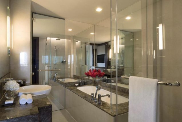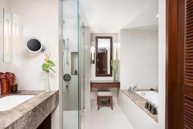 Ванная комната: глубокая ванна, отдельная душевая кабина, премиум-косметика