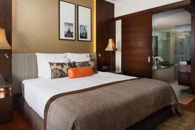 Атмосфера: натуральные текстуры, тёплое освещение, классический тайский стиль в сочетании с элегантной мебелью и большими окнами во всю стену.