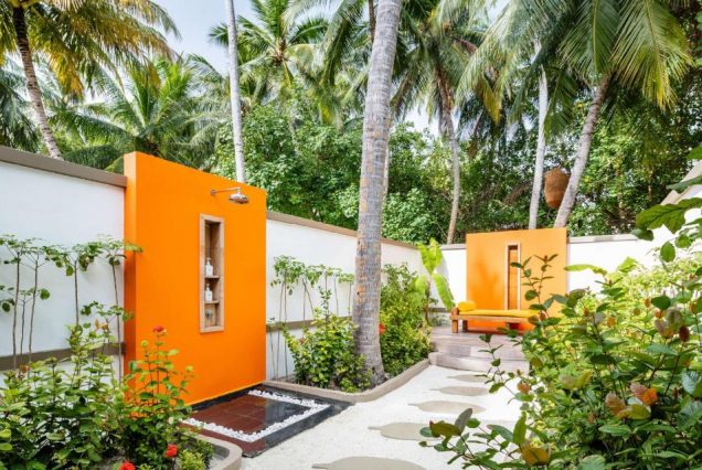 Интерьер: светлые цвета, дерево, мальдивский декор, open-air ванная