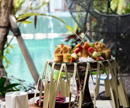 Основной ресторан: The Anumana Restaurant — кухня балийская и азиатская, с панорамой на сады; подача с 07:00 до 10:30