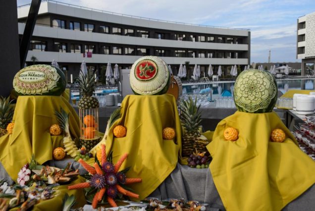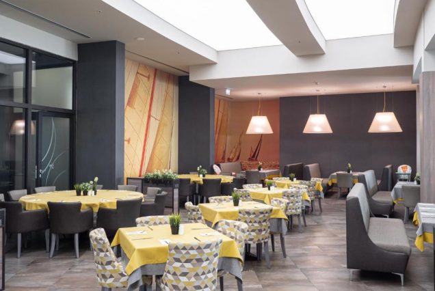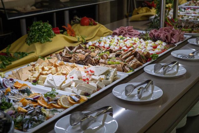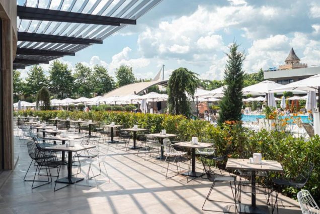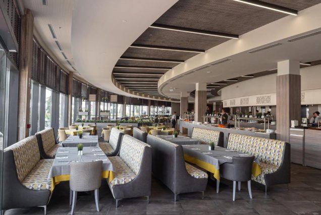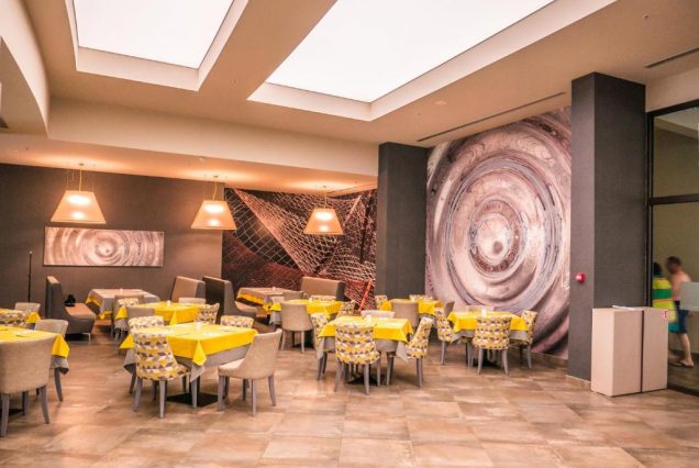 Основной ресторан: The Aqua Restaurant — средиземноморская и болгарская кухня с видом на аквапарк; подача с 07:00 до 10:30
