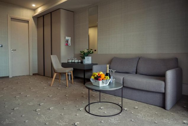 Оснащение: Smart TV, Bluetooth-колонка, кофемашина, мини-бар, сейф, гладильные принадлежности