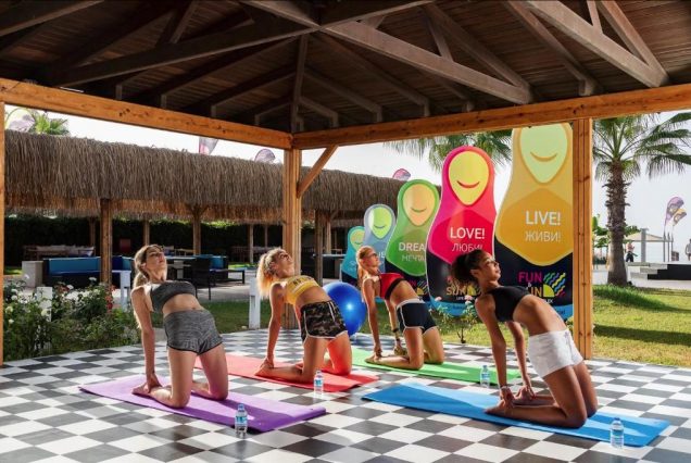 — Утренняя йога на открытой площадке у бассейна