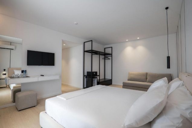 Оснащение: Smart TV, Bluetooth-колонка, кофемашина, чайный набор, мини-бар, сейф, гладильные принадлежности