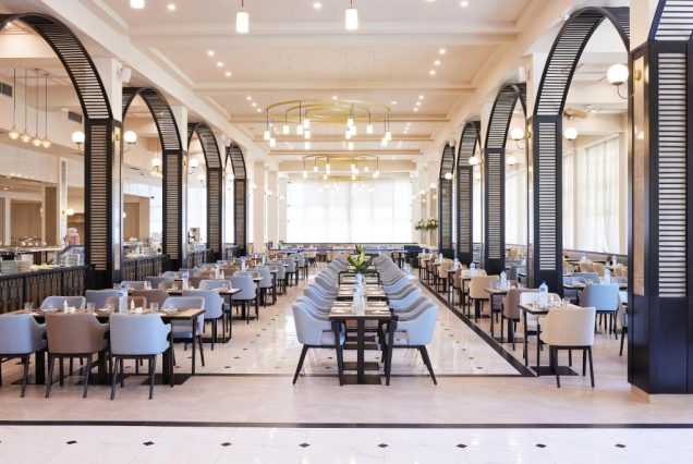 — Основной ресторан: завтраки, обеды и ужины в формате шведского стола — широкий выбор блюд: свежие фрукты, салаты, мясо, рыба, паста, местные деликатесы и сладости.