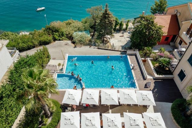 Локации для фото: infinity-бассейн с видом на Адриатику, террасы с обеденными зонами, уютные уголки сада, вечерние огни и свечи