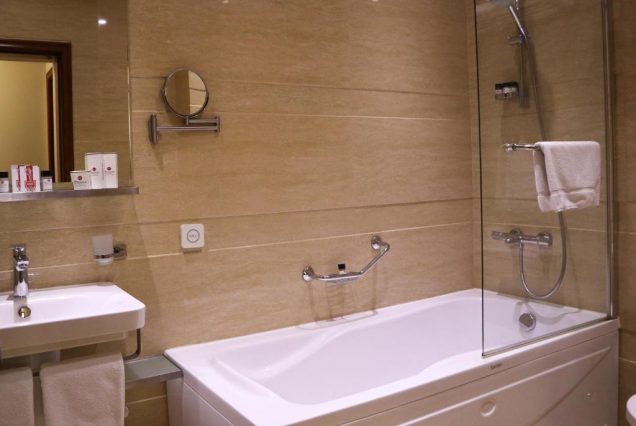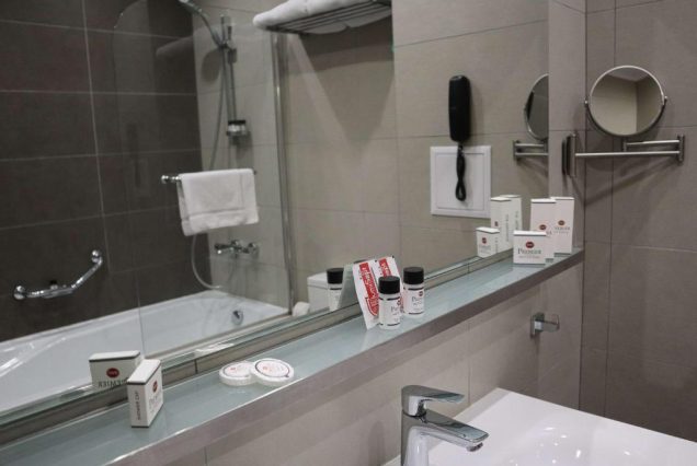 Санузел: ванна, душевая кабина, двойная раковина, премиум-косметика