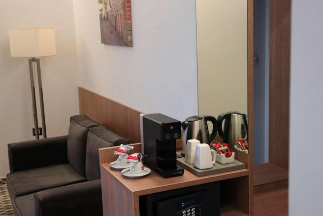 Оснащение: Smart TV, Bluetooth-колонка, кофемашина, мини-бар, сейф, гладильные принадлежности