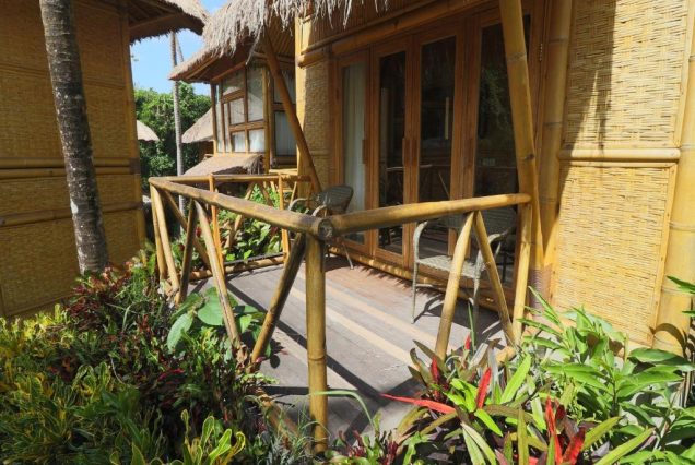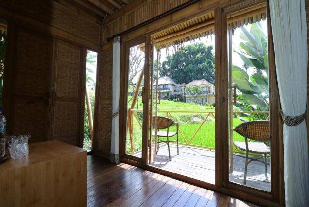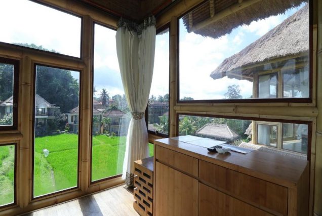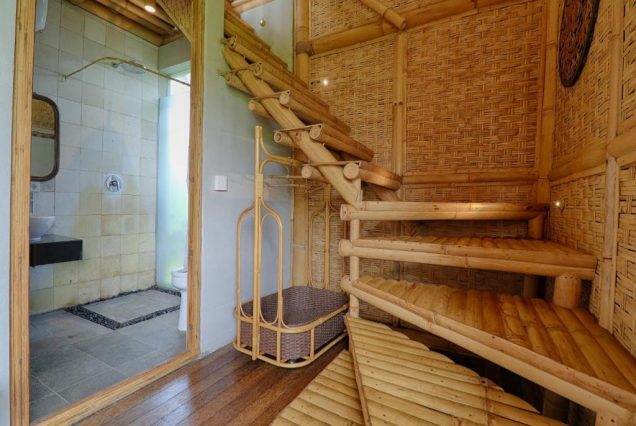 Интерьер: натуральный бамбук, ручная резьба, панорамные окна и деревянный пол
