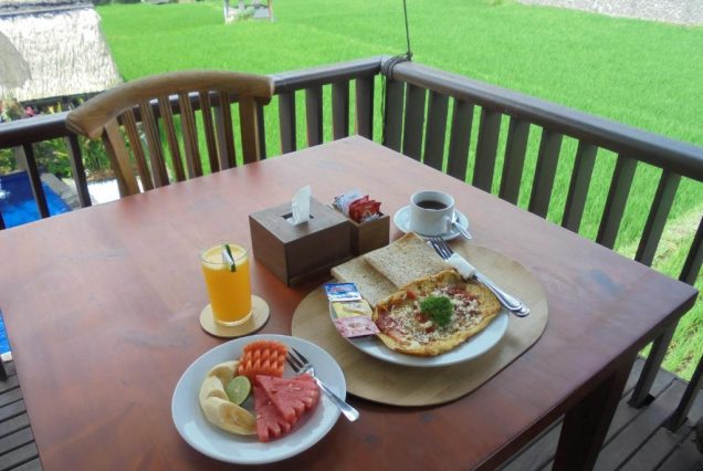 Меню: свежие фрукты, домашние тосты, омлеты, выпечка, свежевыжатые соки, кофе и чай