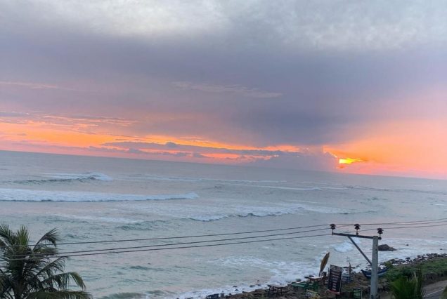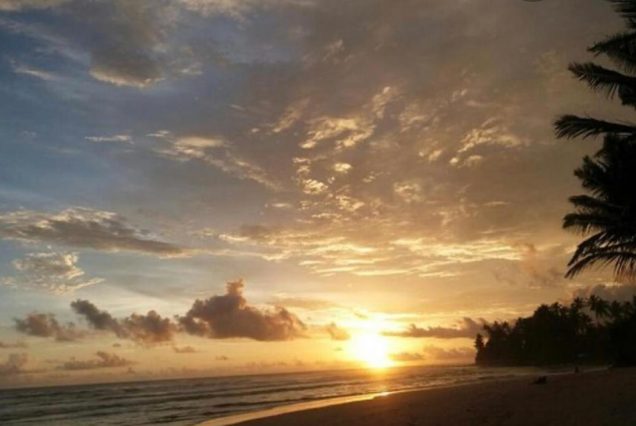Вид: прямой вид на Индийский океан и закат