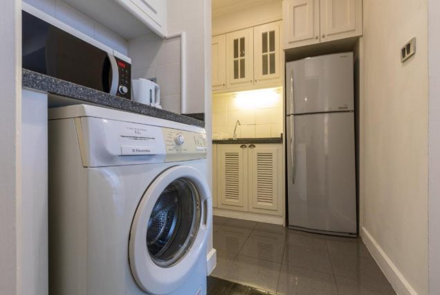 Оснащение: king-size кровать, кухонная зона с плитой и посудой, чайник, микроволновка, холодильник, посудомоечная машина, сейф, TV, утюг, гладильная доска