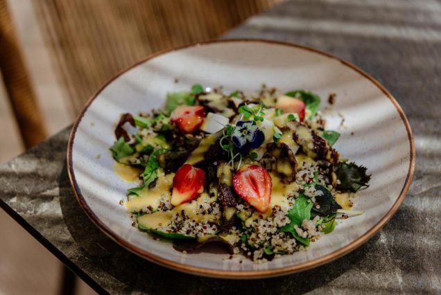 — Обед в кафе при отеле, блюда с локальными овощами и морепродуктами