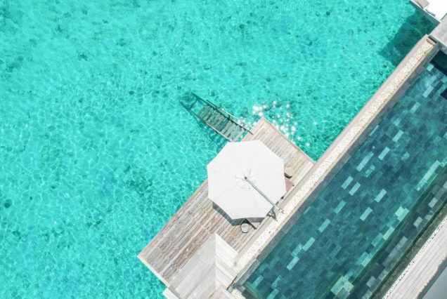 Фотозоны: бассейн с видом на лагуну, ужин на пирсе, утренний свет в спальне