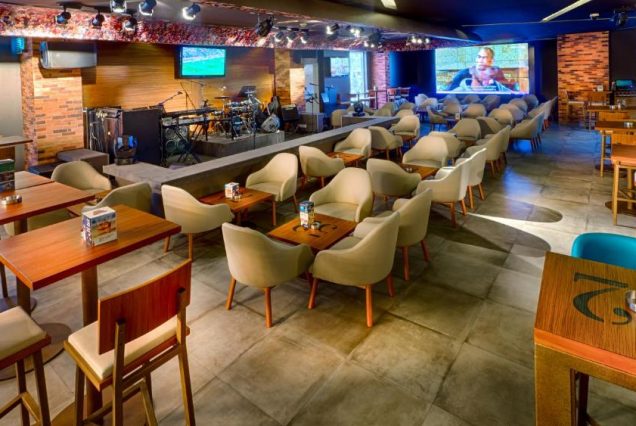 Вечером: живая музыка, спортивные трансляции, лаунж-зоны.