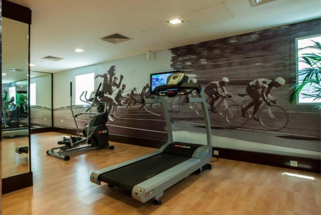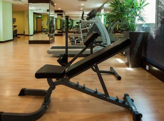 Фитнес: тренажёрный зал с современными кардиотренажёрами и силовыми машинами.