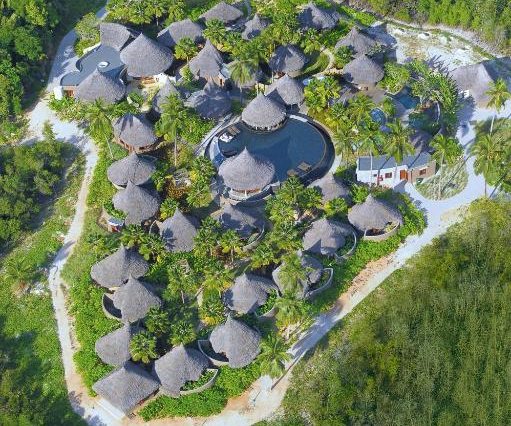 Панорама и архитектура: белоснежные виллы в окружении тропических садов, лагуна с бирюзовой водой, пляжи с пальмами, современный дизайн с элементами природных материалов