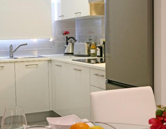 • Полностью оборудованная кухня (плита, микроволновка, чайник, холодильник, посуда)