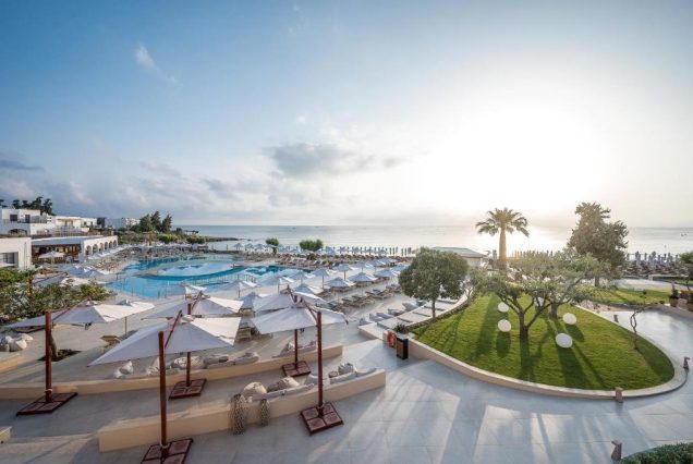 Creta Maris Resort 5★ — это идеальное сочетание критского гостеприимства, природы и концепции «всё включено» в элегантной обёртке. Расположенный на первой береговой линии, в шаге от старинного поселения Херсониссос, отель объединяет в себе традиционную архитектуру, просторную территорию, мощную гастрономию и особую философию «eco & local». Белоснежные корпуса, мощёные дорожки, терракотовые крыши, виноградники и оливковые деревья создают ощущение отдыха в критской деревне — только с уровнем пяти звёзд. Здесь можно просыпаться под пение птиц, завтракать в тени апельсиновых деревьев, исследовать кулинарию острова в местных тавернах отеля, загорать у бассейна или у моря, а вечером смотреть закат с бокалом вина и джазом в лаунже. Всё продумано до мелочей: для пар, семей, wellness-туристов и тех, кто хочет совместить комфорт с атмосферой настоящей Греции.