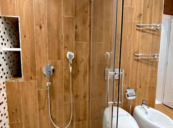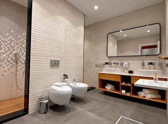 Санузел: просторный, с душевой кабиной и ванной, двойная раковина, премиальная косметика