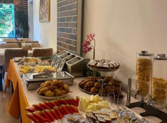 Меню: свежие сезонные фрукты, традиционные албанские блюда, яйца, круассаны, домашняя выпечка, смузи, органический кофе и чай