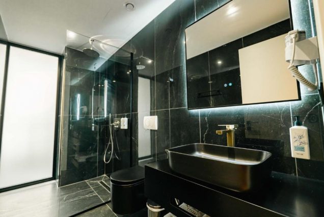 — Удобства: кондиционер, телевизор с плоским экраном, сейф, Wi-Fi, чайник, мини-бар