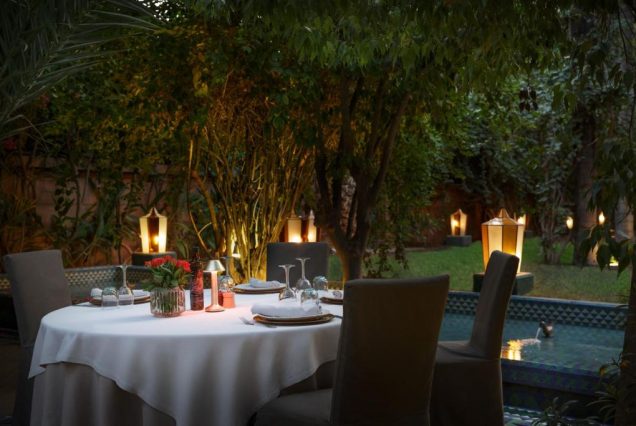 Локации для фото: терраса с видом на медину, традиционные марокканские интерьеры, вечерние огни в саду, расслабляющие уголки у бассейна.