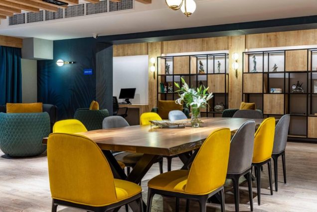 Локации для фото: уютный лобби, ресторан с большими окнами, фитнес-зал с видом, вечерняя подсветка фасада