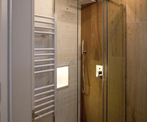 Санузел: ванна с гидромассажем, душевая с тропическим душем, двойная раковина