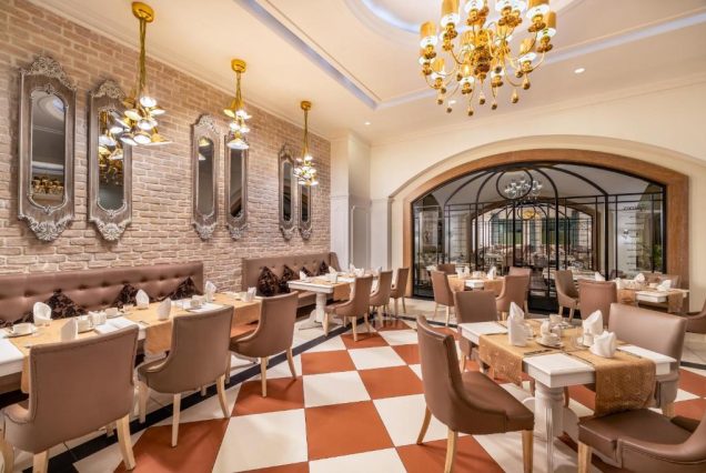 A’la carte рестораны: по предварительной записи — турецкий, итальянский, азиатский, рыбный (1–2 посещения бесплатно в неделю, в зависимости от отеля)