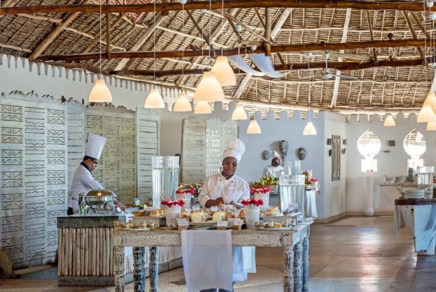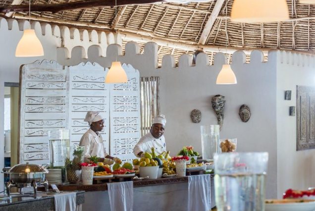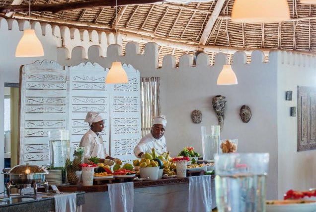 Основной ресторан: The Mapenzi Restaurant — кухня африканская и международная с видом на океан; подача с 07:00 до 10:30