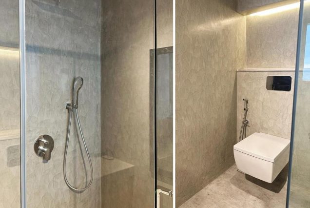 Санузел: ванна с видом, душ, двойная раковина