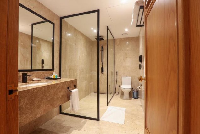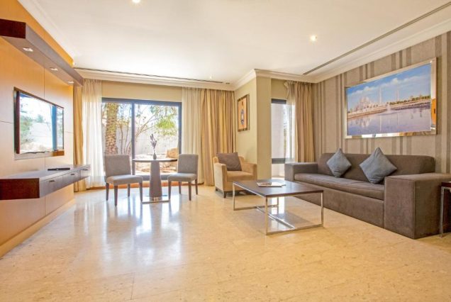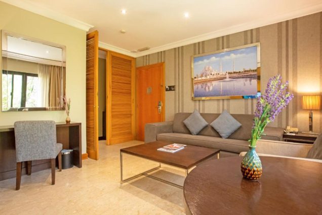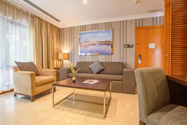 — Оснащение: двуспальная кровать king-size или два отдельных спальных места; кондиционер; телевизор; мини-бар; чай/кофе‑станция; сейф; бесплатный Wi‑Fi
