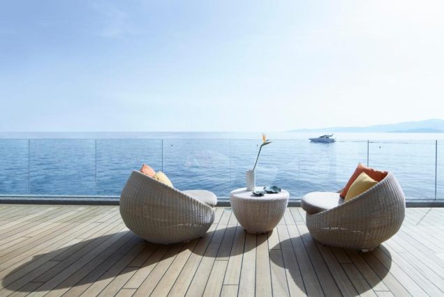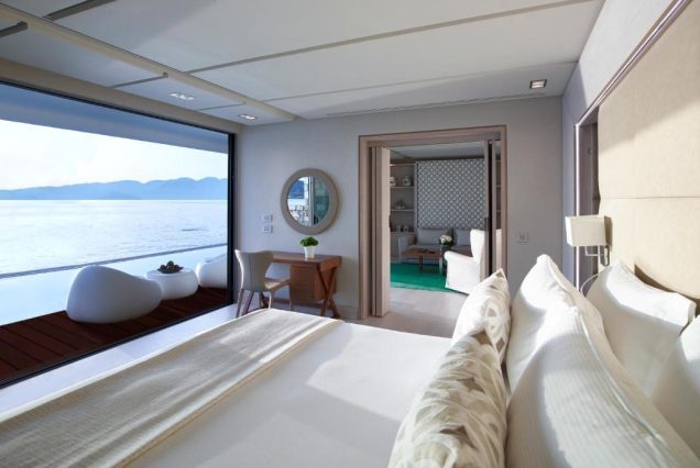 Вид из номера: панорамный — на Эгейское море, рассветы и яхты в гавани