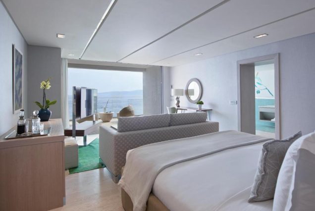 На территории работают несколько ресторанов, где подают блюда греческой, испанской, итальянской и паназиатской кухни, а также устрицы, морепродукты, стейки и авторские коктейли. Завтрак — богатый «шведский стол» с продуктами местных производителей, а вечерние ужины проходят в атмосфере романтики и вида на море. Санаторий предлагает три бассейна, из них один инфинити‑бассейн, расположенный над самой водой, а также роскошный спа‑центр с хаммамом, сауной, массажами, обёртываниями и процедурами для лица и тела.