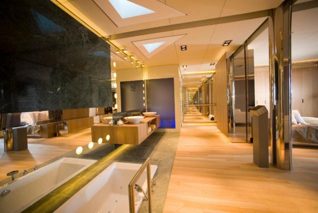 — Современная ванная комната с душем, халатами, тапочками и косметикой премиум‑класса