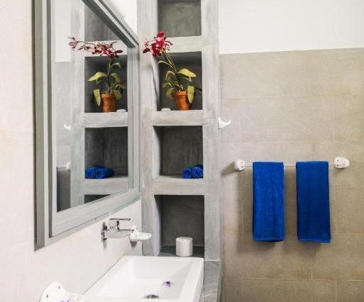 Санузел: ванна под открытым небом, душевая с тропическим душем, двойная раковина