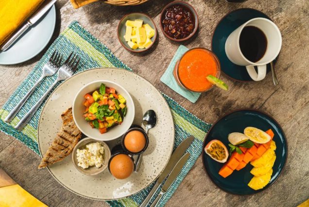 Меню: свежие фрукты, домашние йогурты, каши, яйца, блины, фруктовые боулы