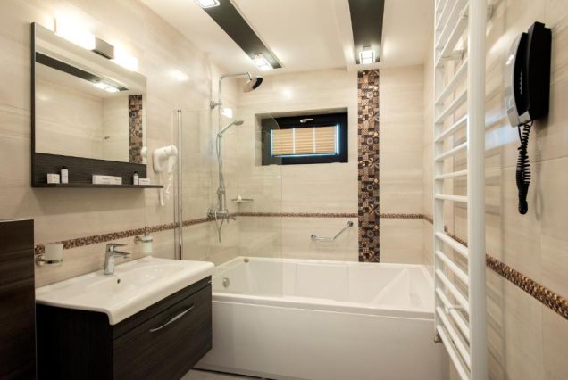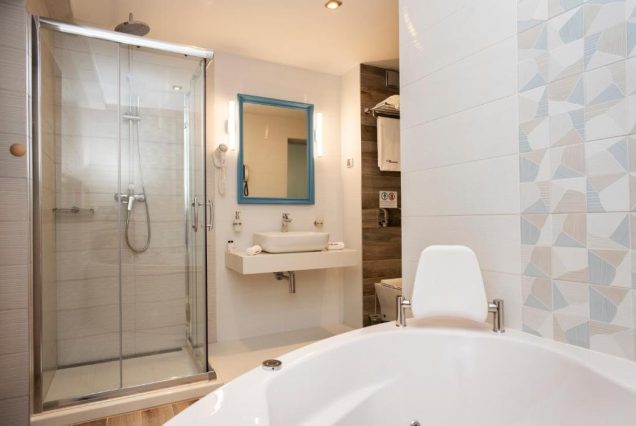 Санузел: ванна, душевая с тропическим душем, двойная раковина, биде